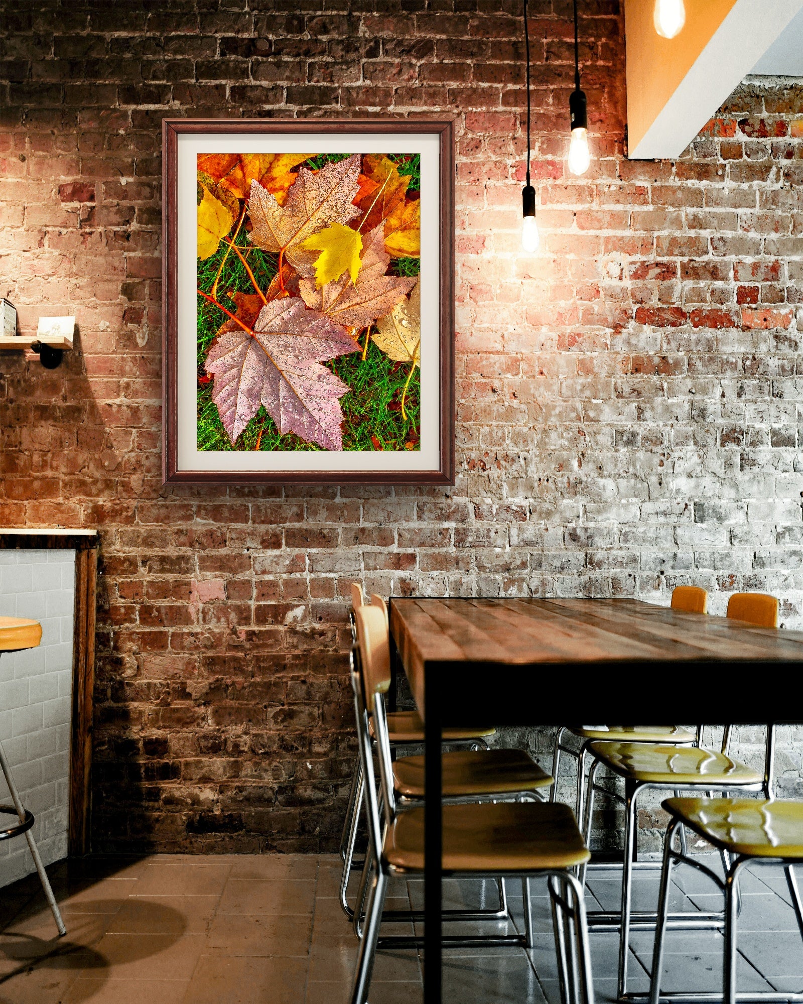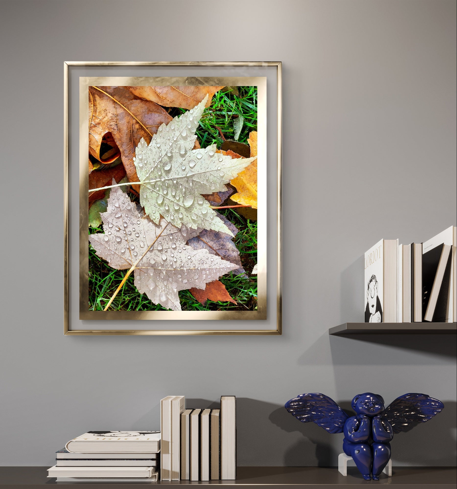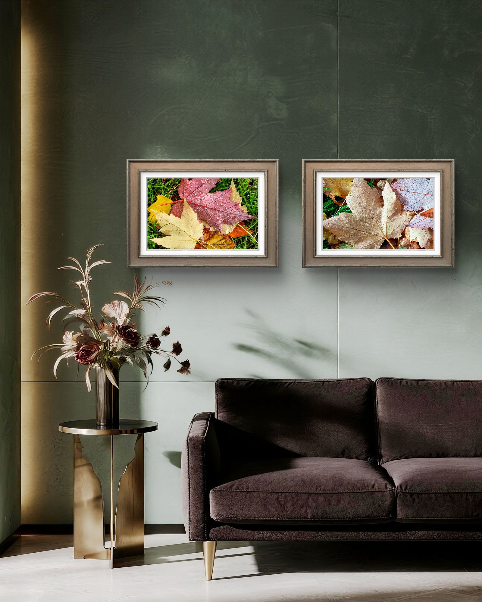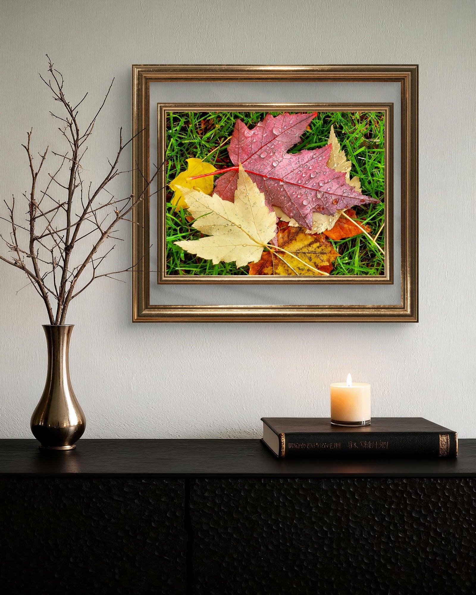 Q: Why does rain photography create better wall art than standard autumn leaf photos?