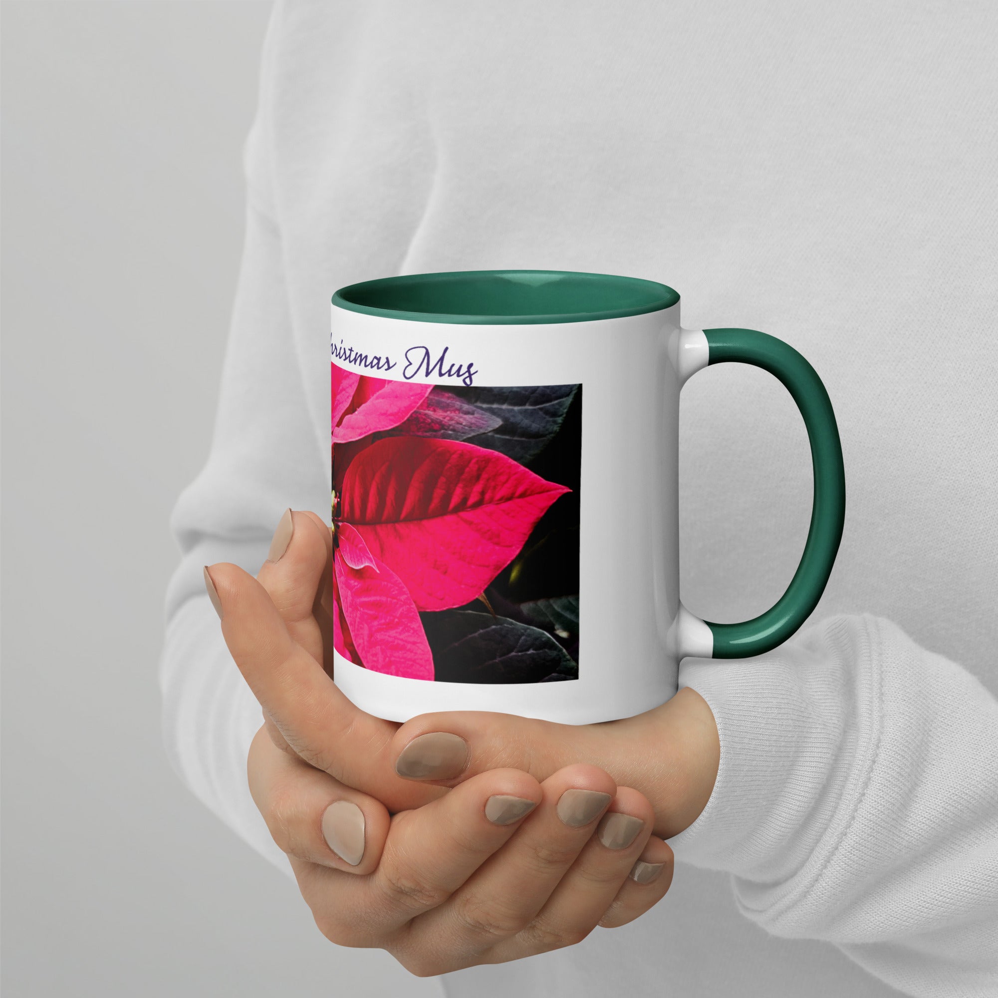 A: The green interior creates multiple functional and aesthetic benefits enhancing the gift experience. Festive Surprise: Opening a gift to discover unexpected interior color creates delightful moment - continues surprising Mom with each use. Color Psychology: Green represents renewal, harmony, and Christmas tradition - psychologically pleasant for daily beverage ritual. Holiday Coordination: Green interior with red poinsettia exterior creates classic Christmas color scheme without overwhelming design. Practical Benefit: Colored interior can hide tea or coffee staining better than pure white, maintaining cleaner appearance over time. Design Sophistication: Two-tone ceramic appears more upscale than single-color mugs, showing extra thought in gift selection. Visual Interest: Green interior photographed with beverages creates appealing social media moments if Mom shares her Christmas gift online.