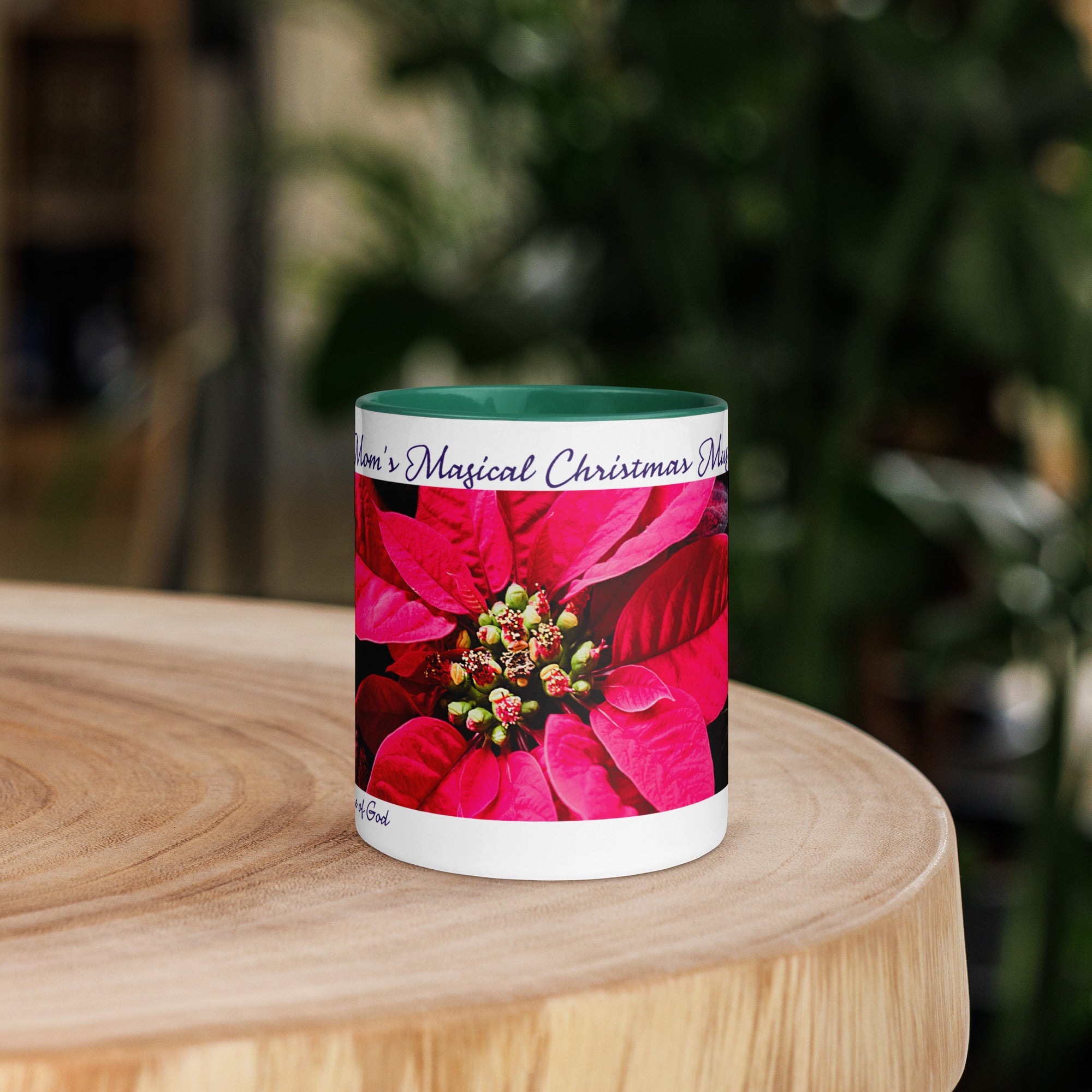 A: This mug combines personalization, beauty, and practicality creating the perfect Mom-focused Christmas gift. Personalized Text: Mom's Magical Christmas Mug acknowledges Mom's special role in making Christmas magical - planning, decorating, cooking, and creating family memories. Thoughtful Design: The poinsettia imagery represents holiday beauty Mom brings to celebrations. Daily Reminder: Every morning coffee or tea reminds Mom she's appreciated beyond just Christmas day. Quality Construction: Durable ceramic and fade-resistant printing show you invested in something lasting, not disposable. Practical Gift: Unlike decorative-only items, this combines sentiment with daily functionality. Green Interior: The festive surprise color adds joy to each use - a little magic in everyday moments.