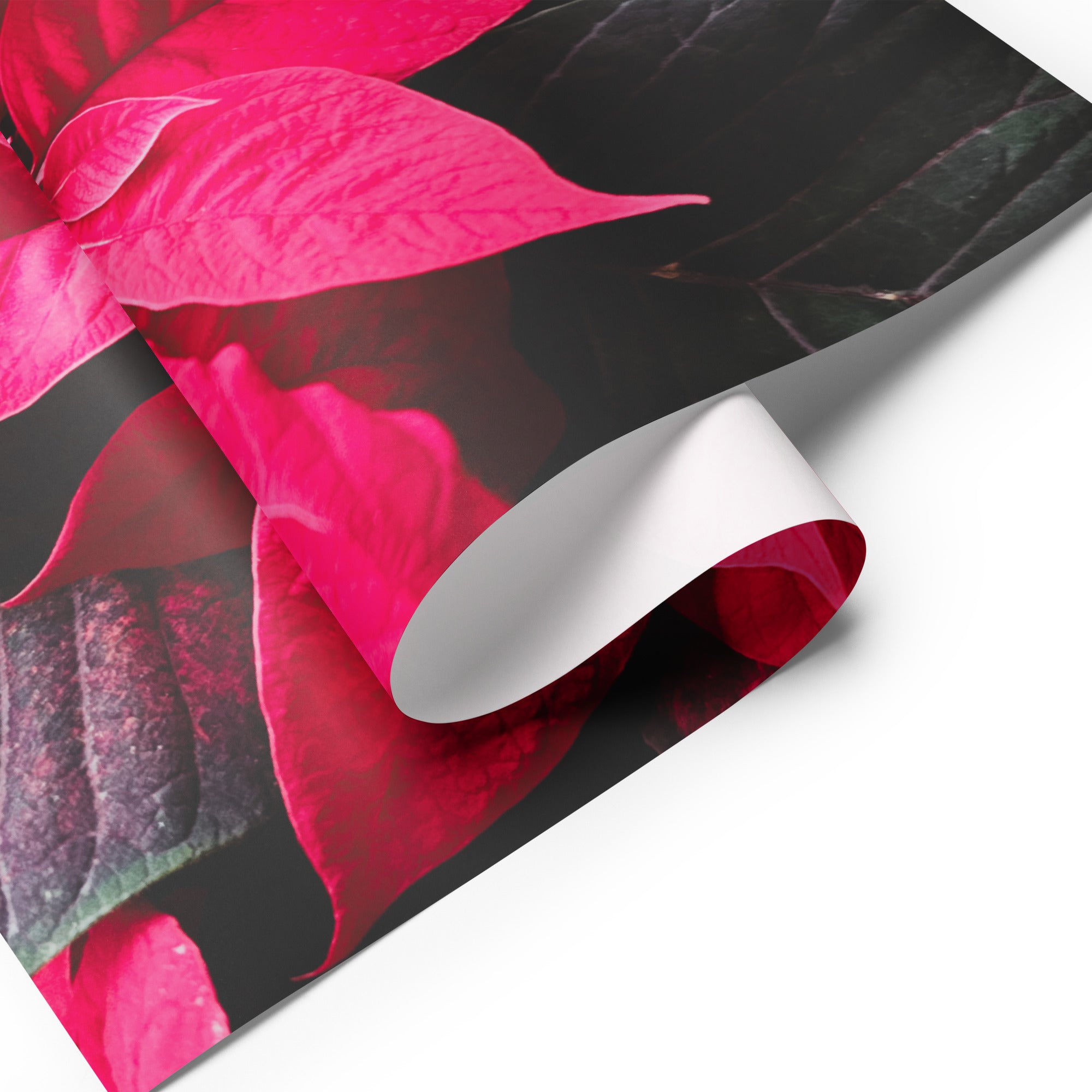 Transform your gift-giving with these stunning wrapping paper sheets featuring authentic macro photography of vibrant red poinsettias. Each design captures the intricate beauty of poinsettia blooms with dramatic dark leaves creating sophisticated contrast.