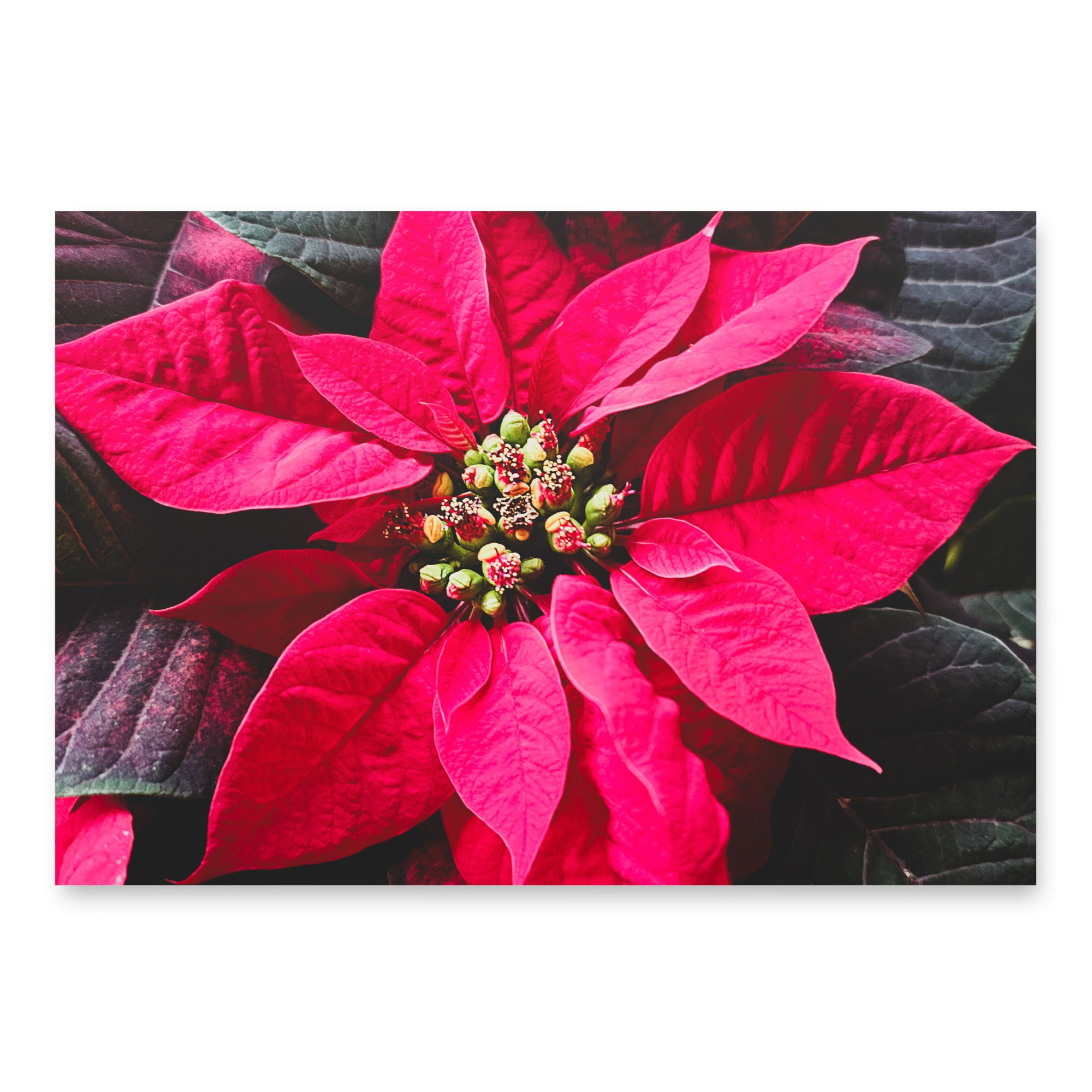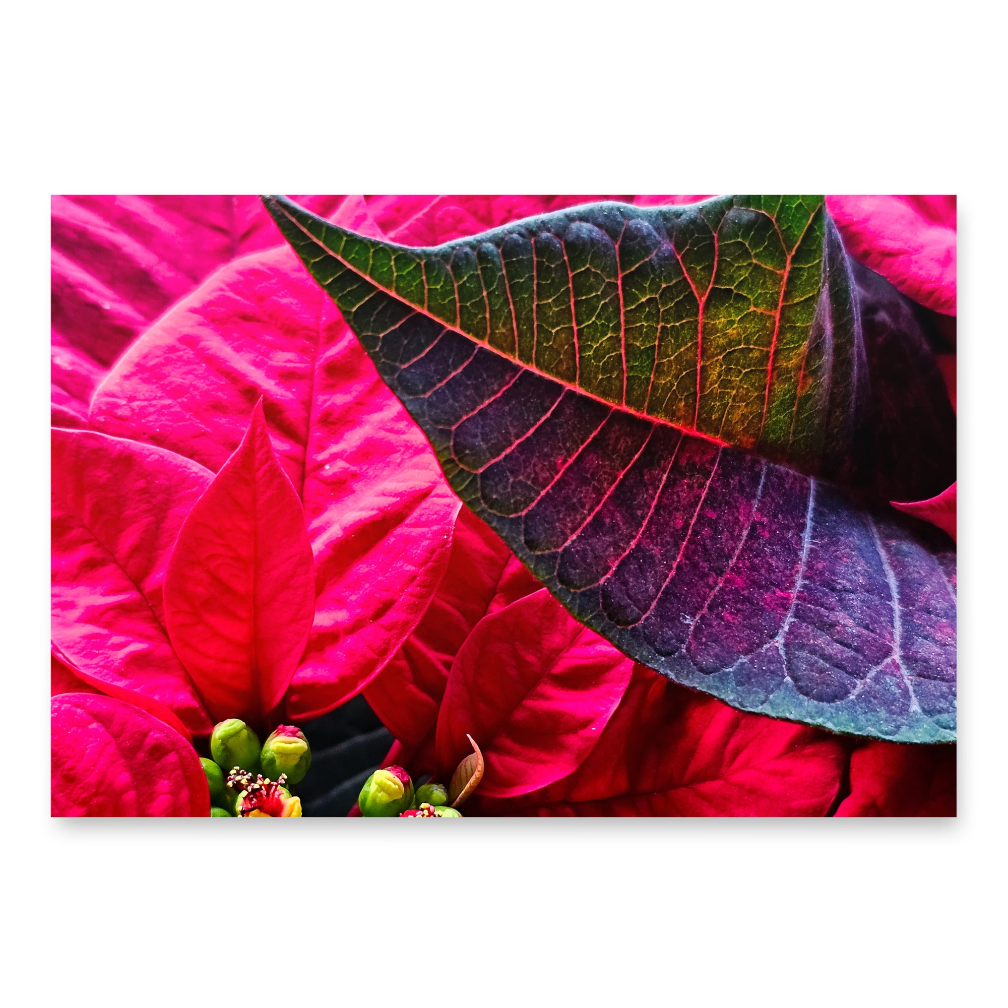 Professional photography reveals extraordinary detail - from delicate center stamens to the rich vein patterns in multicolored leaves. Perfect for Christmas, winter celebrations, or anyone appreciating nature's artistry.