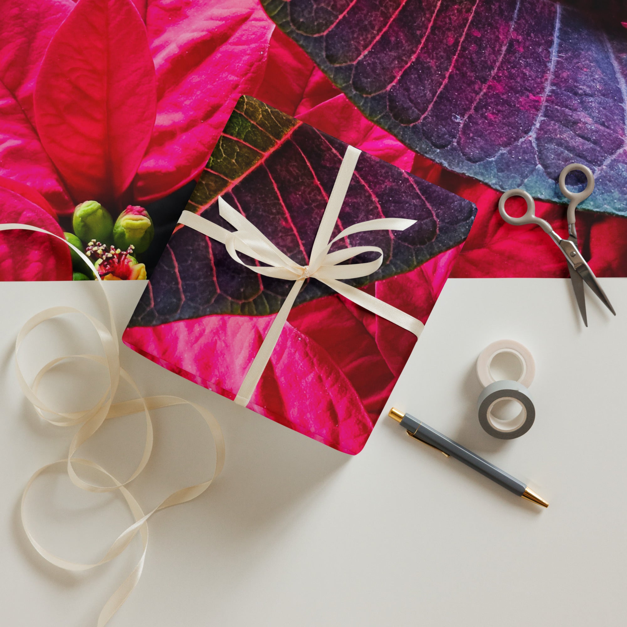 A: While poinsettias are strongly associated with Christmas, these designs offer broader seasonal applications. Christmas: Obviously perfect for Christmas gift wrapping with traditional red and green colors. Winter Holidays: Appropriate for Hanukkah (no religious symbols), New Year, winter birthdays, or general winter celebrations. Botanical Gifting: Suitable year-round for plant lovers, gardeners, or nature enthusiasts regardless of season. Sophisticated Alternative: For those wanting seasonal feel without explicitly Christmas imagery (no Santa, snowflakes, or holiday text). Cultural Versatility: Poinsettias hold significance in various cultures and traditions beyond Christmas. Gift Recipient Consideration: Perfect for anyone who appreciates botanical beauty, photography, or natural design regardless of holiday observance. Craft Use: The botanical nature photography transcends seasonal limitations for craft projects.