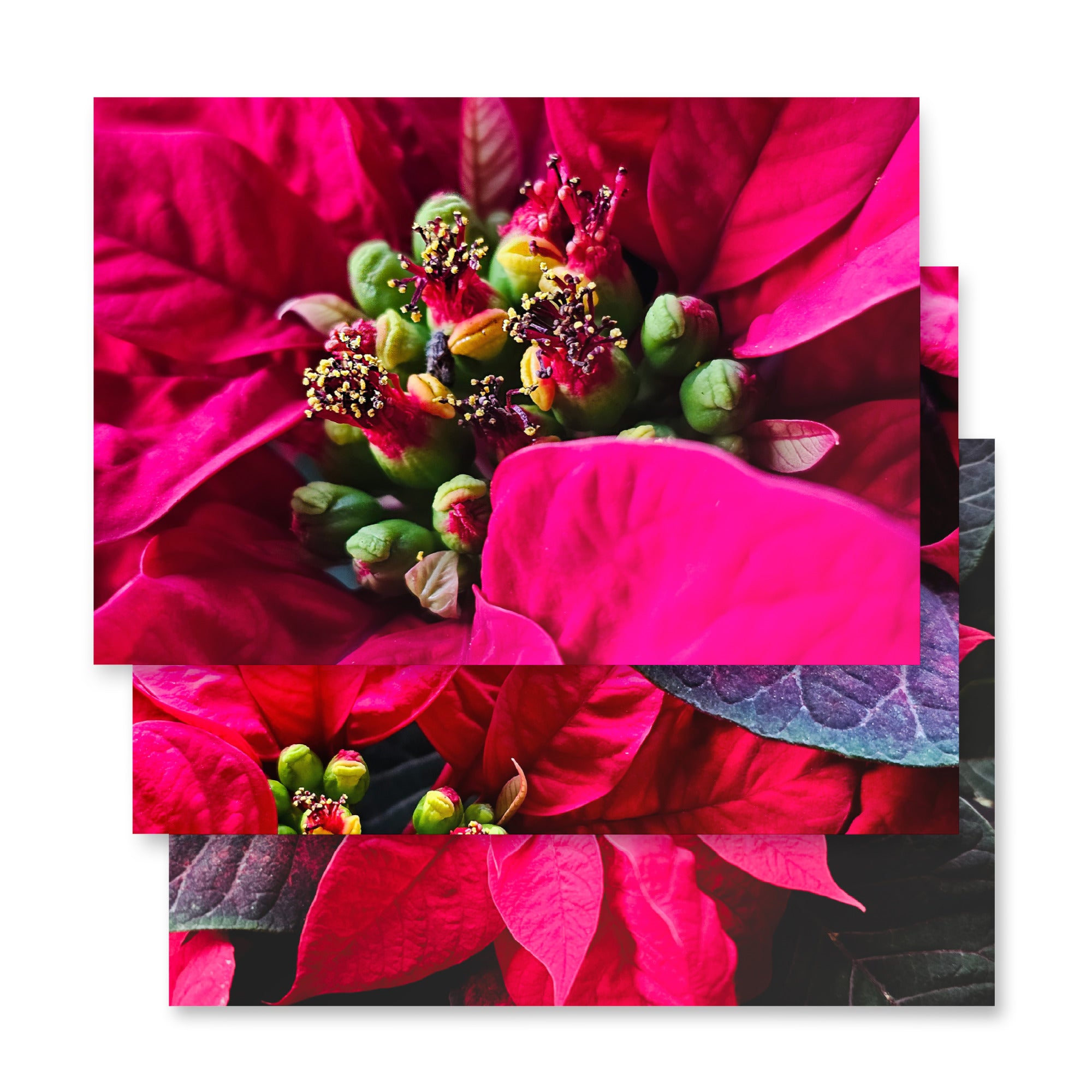 ✓ Authentic Poinsettia Macro Photography: Three unique designs featuring real red poinsettia blooms captured through professional macro lens techniques.
