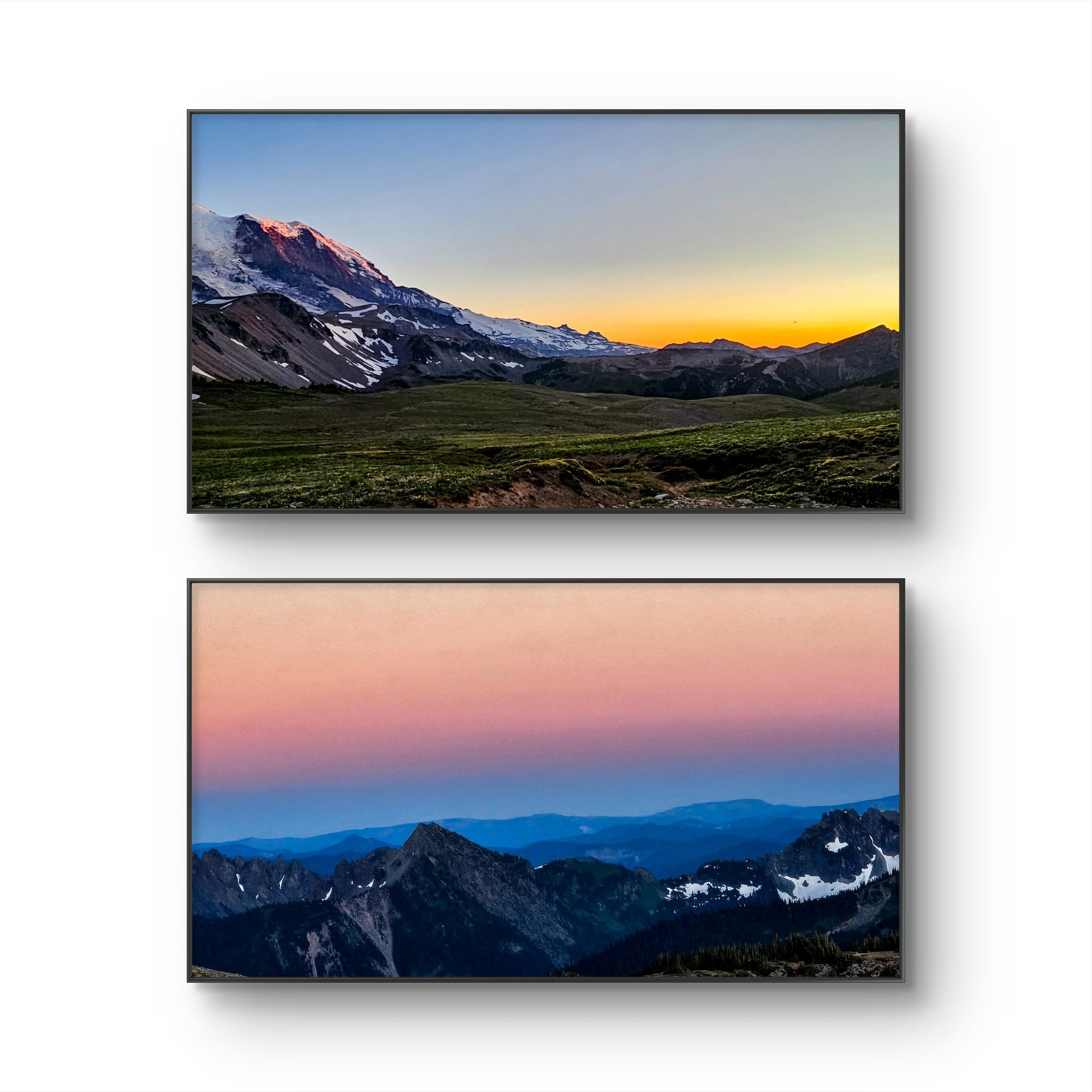 The Virtue of God Mt. Rainier in Summer Sunset | Authentic Nature Photography 2 Prints Set | Unframed Horizontal Canvas Wall Art | Biophilic Style Home Decor