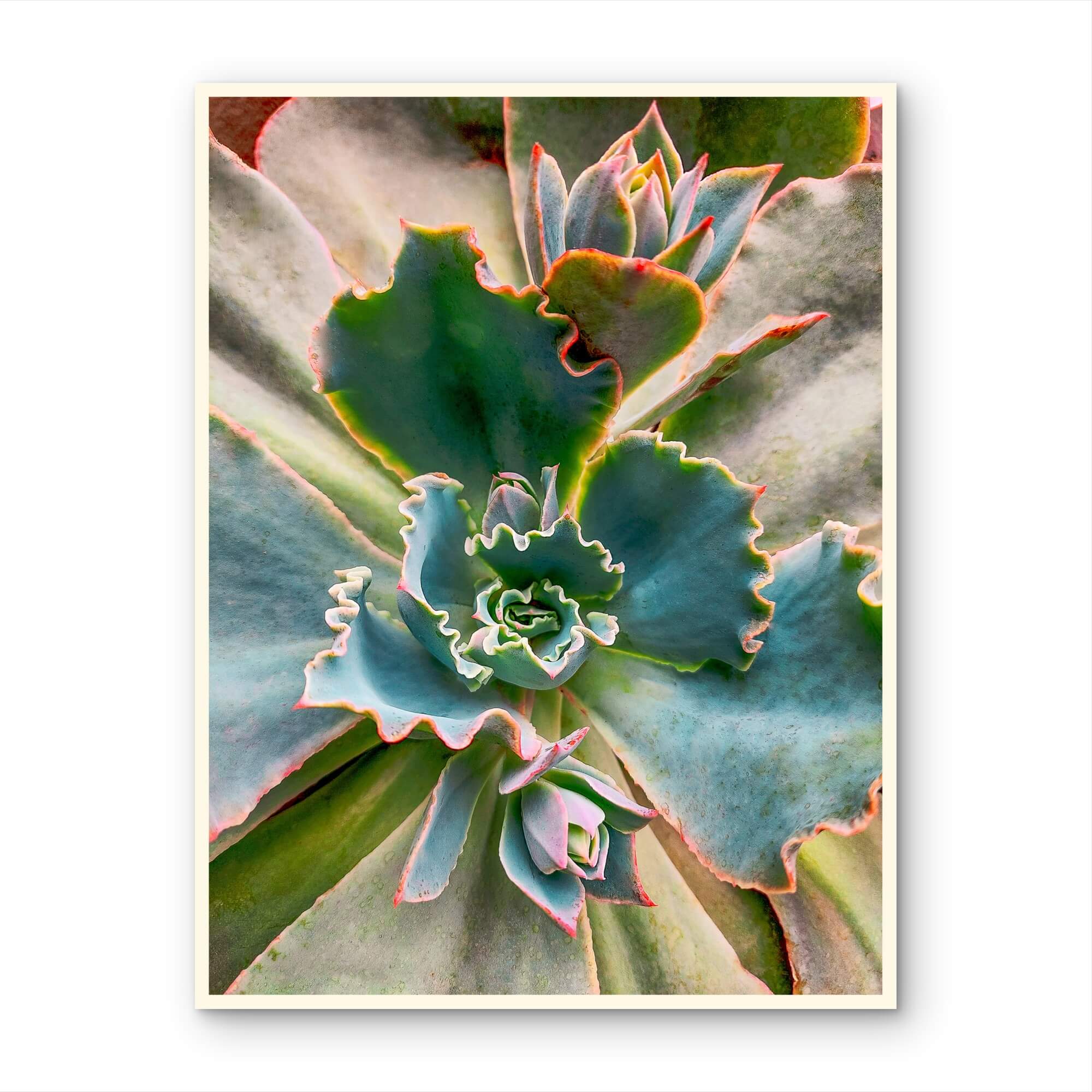 This photograph was made from directly above, close enough that the entire frame is succulent. There is no background, no context, nothing to compete with the geometry. Just the plant, the light, and the quiet mathematical logic of how living things grow.