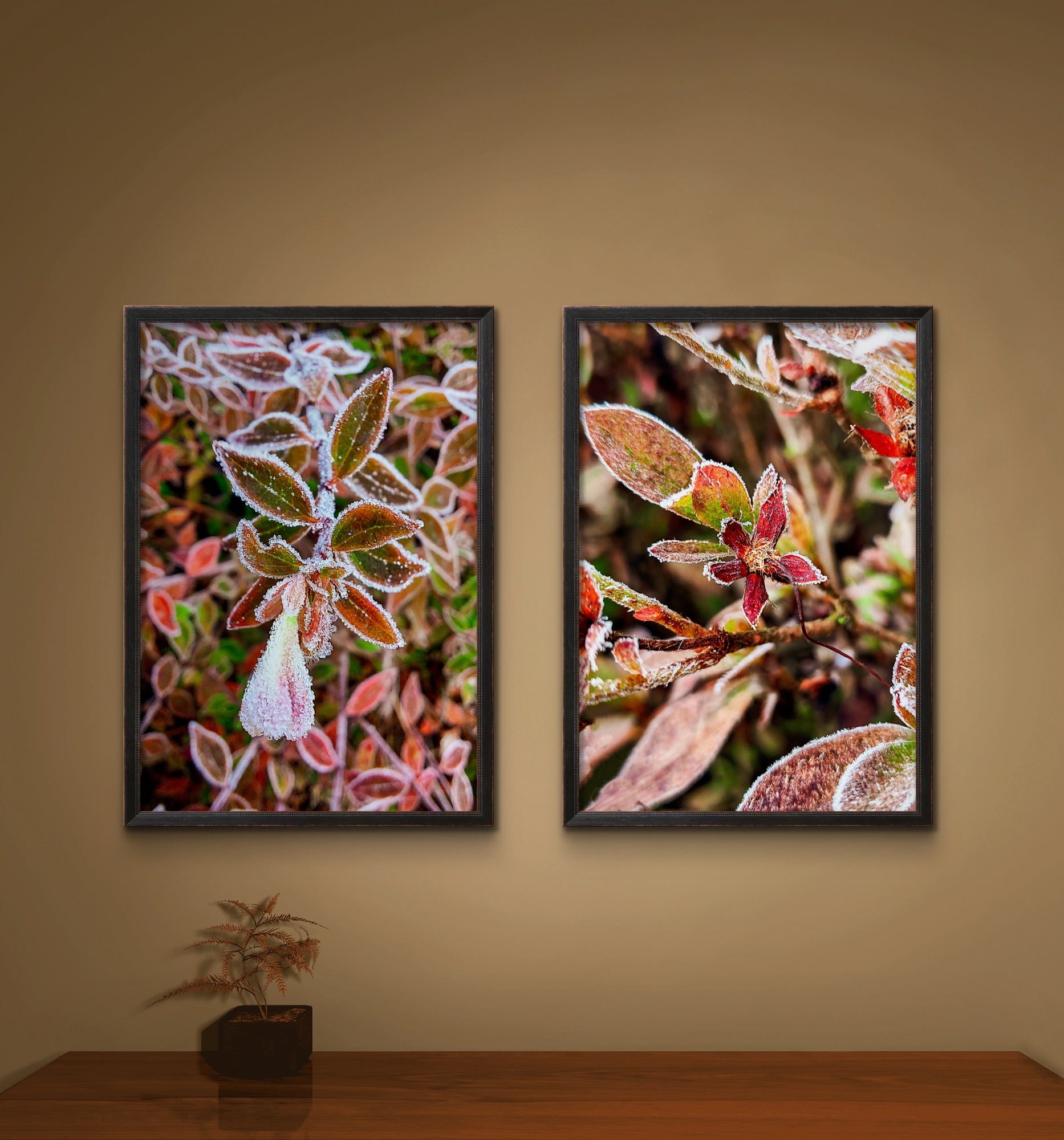 Holiday-Perfect Aesthetic - The frost-covered leaves evoke cozy winter feelings without being overtly seasonal. These prints work year-round but feel especially magical during the holiday season, making them perfect for gift-giving or seasonal decorating.