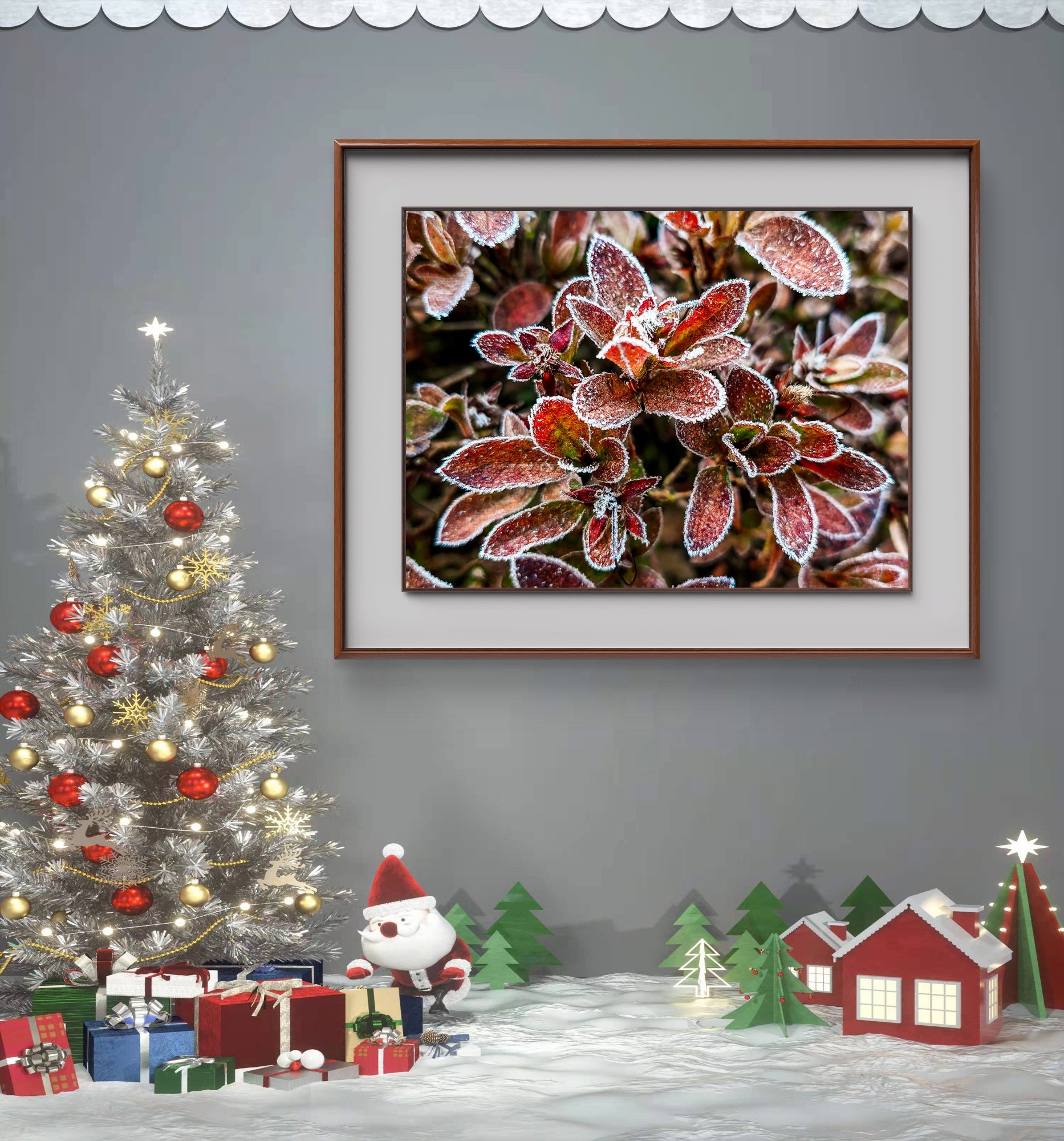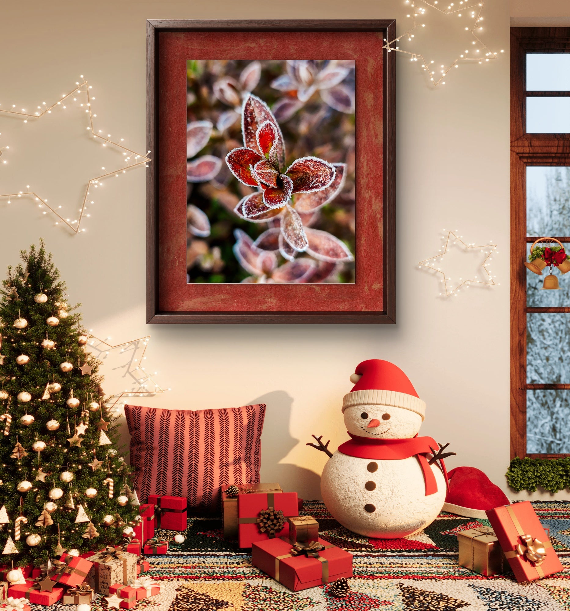 Discover more winter wilderness in the complete Winter Frozen Collection → https://www.thevirtueofgodbrand.com/products/winter-nature-macro-photography-gallery-grade-unframed-4-prints-set-of-vibrant-frosty-leaves-custom-home-or-office-wall-art-decor
