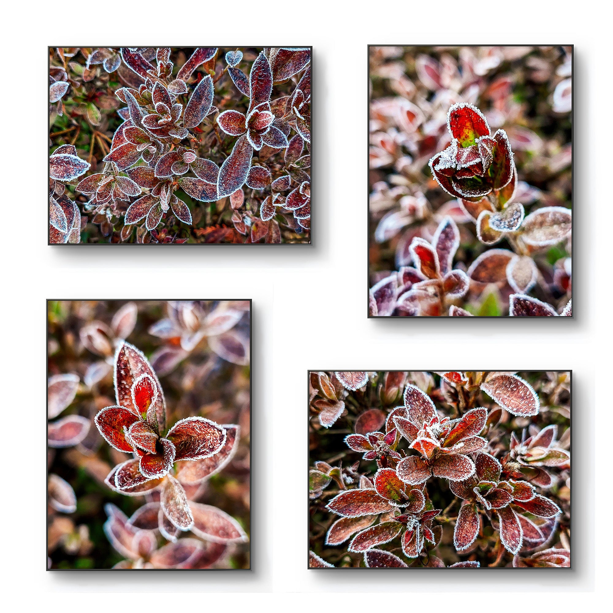 Winter Frosty Leaves Authentic Pacific Northwest Nature Photography | Canvas Wall Art Set of 4 | Vertical & Horizontal Unframed Prints | Biophilic Home Decor | Holiday Gift