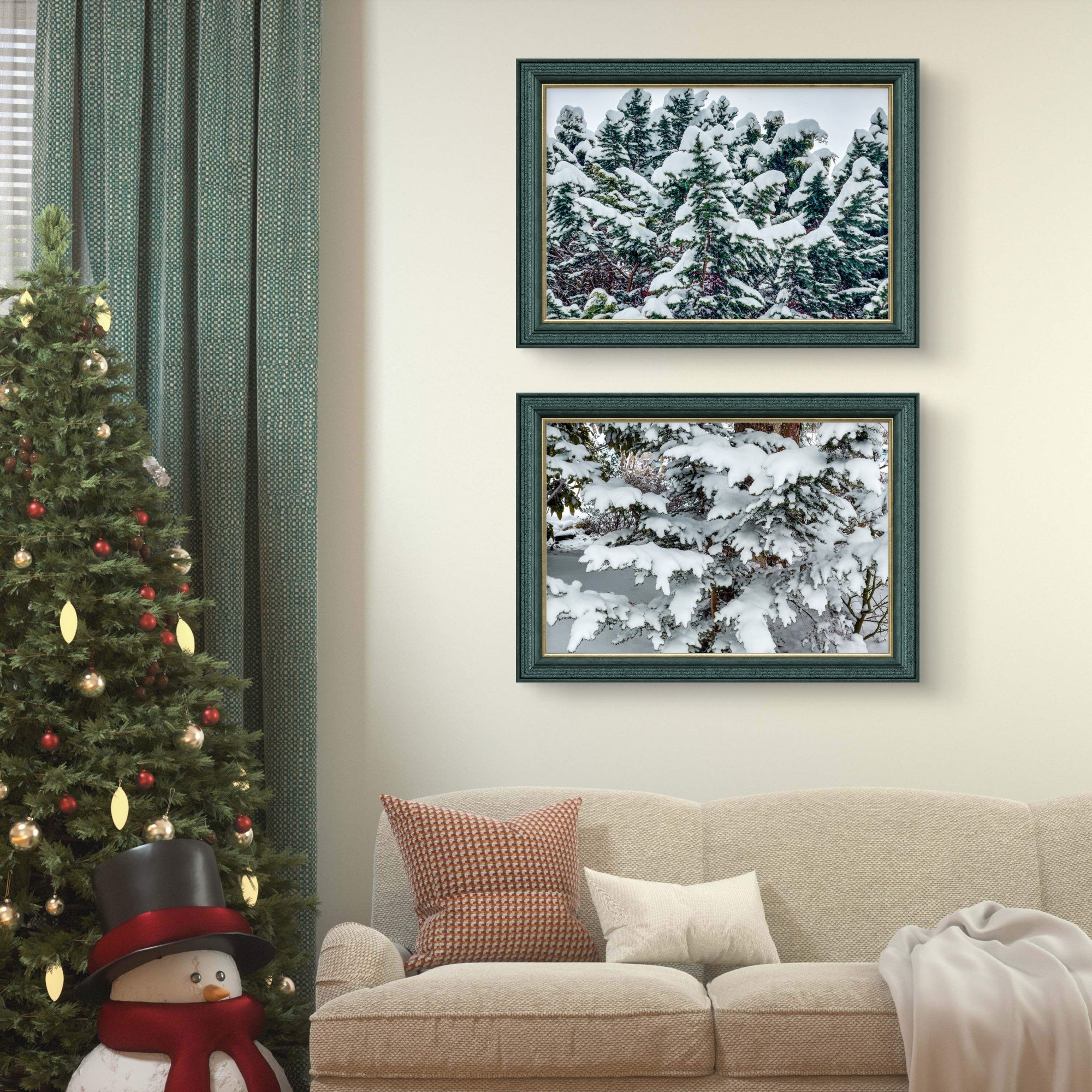 Q: Are these suitable for year-round display? A: Absolutely! While photographed in winter, evergreen forests are perpetually relevant. Many customers display year-round because: (1) evergreens represent timeless natural beauty, (2) snow adds sophistication without feeling seasonal, (3) forest serenity transcends seasons, (4) the vibrant greens work with any decor. Think "winter-inspired forest art" that remains forever fresh.