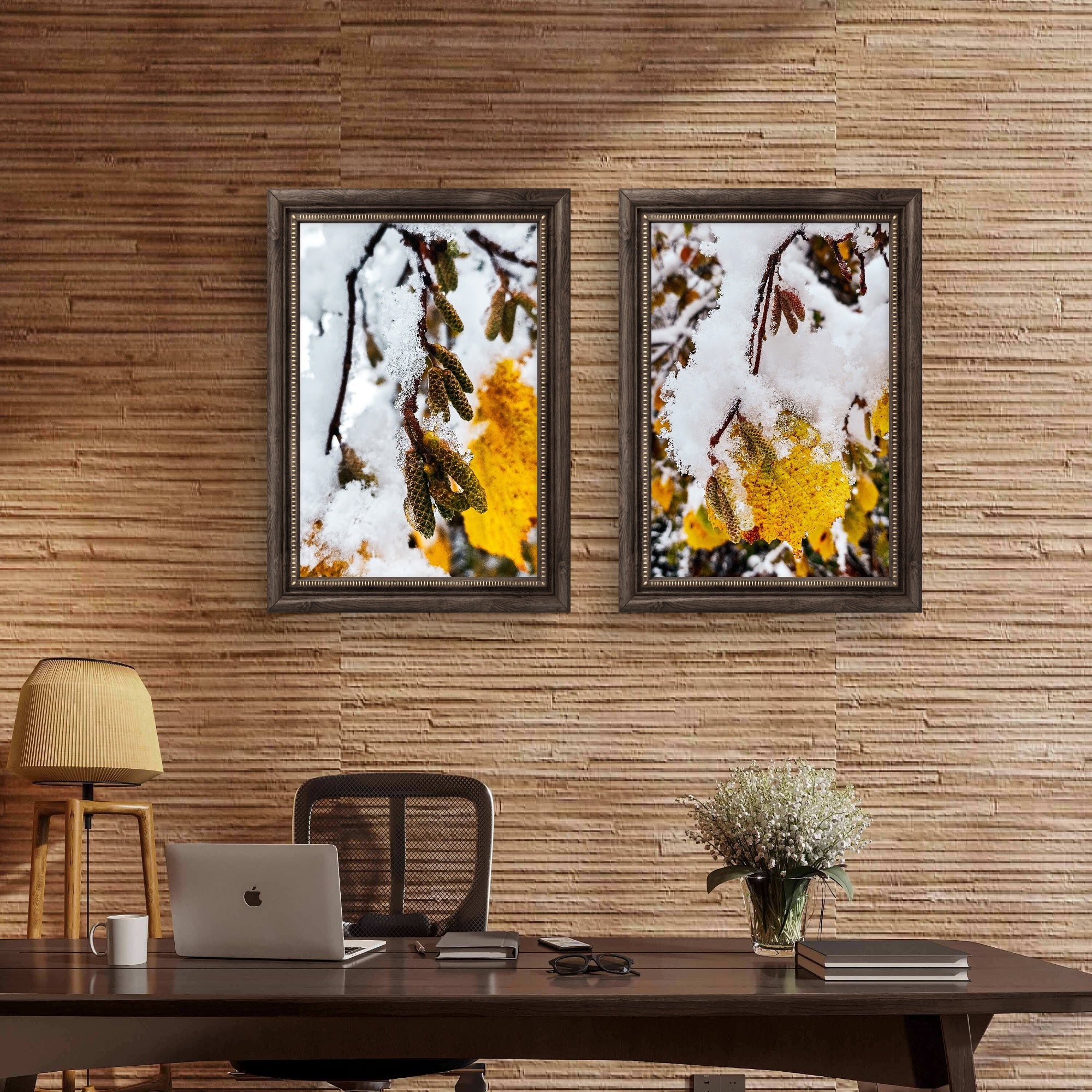 Biophilic design for wellness: Scientific research shows that nature imagery reduces stress, improves focus, and enhances mental wellbeing. The warm yellow-brown tones paired with cool winter whites create visual balance that brings calm to any space. Perfect for bedrooms, living rooms, meditation spaces, or offices where you need peaceful inspiration.