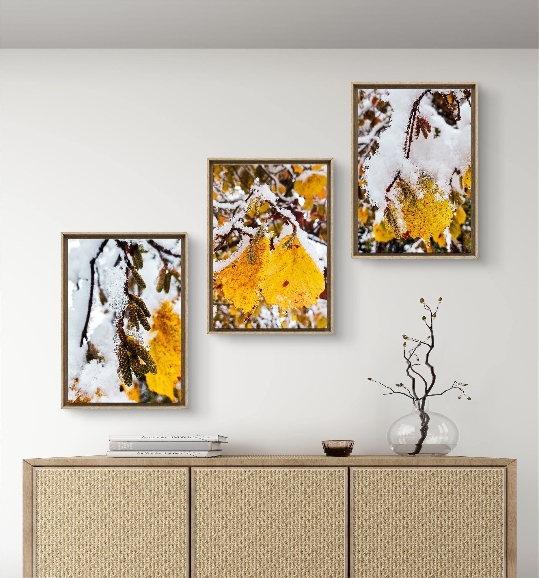 A: Biophilic design incorporates natural elements (plants, natural light, nature imagery) into indoor spaces to improve human well-being. Scientific studies show that biophilic design reduces stress, improves focus, enhances creativity, and promotes emotional wellness. Nature photography like this winter leaves print brings the calming, restorative benefits of the outdoors into your home or office—especially valuable in urban environments or during seasons when you can't spend time outside.