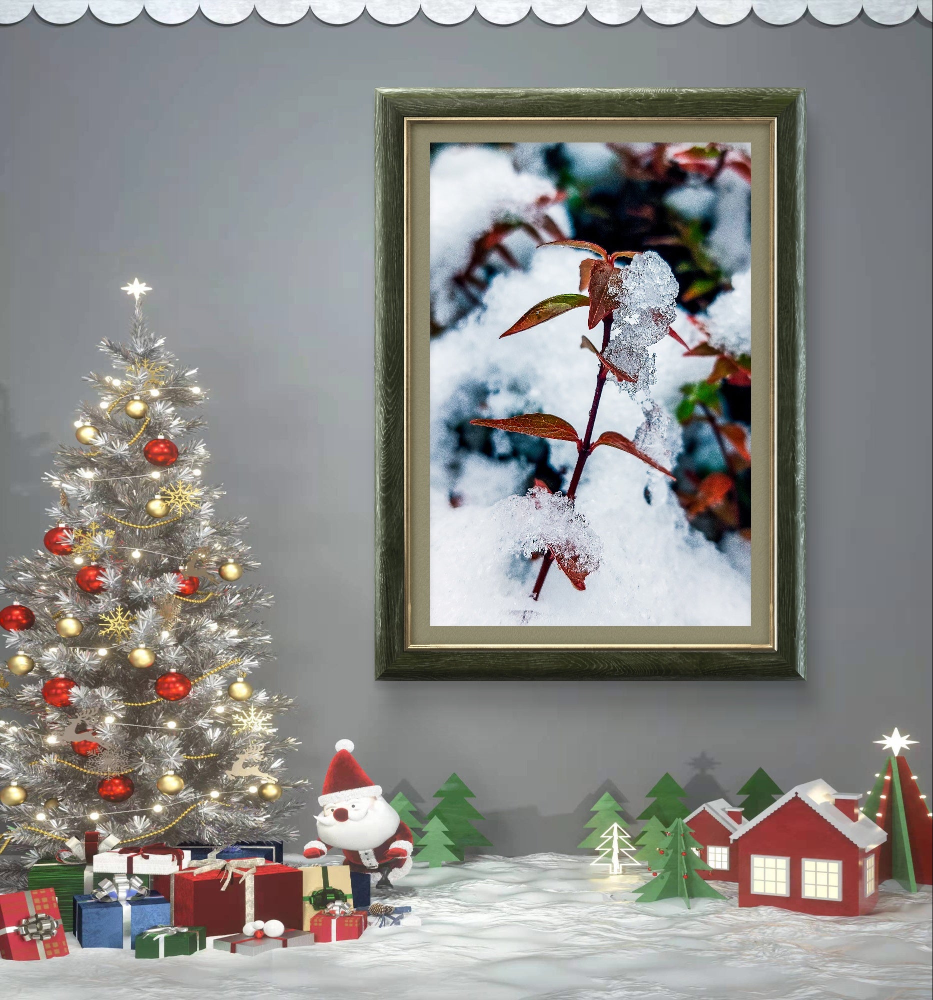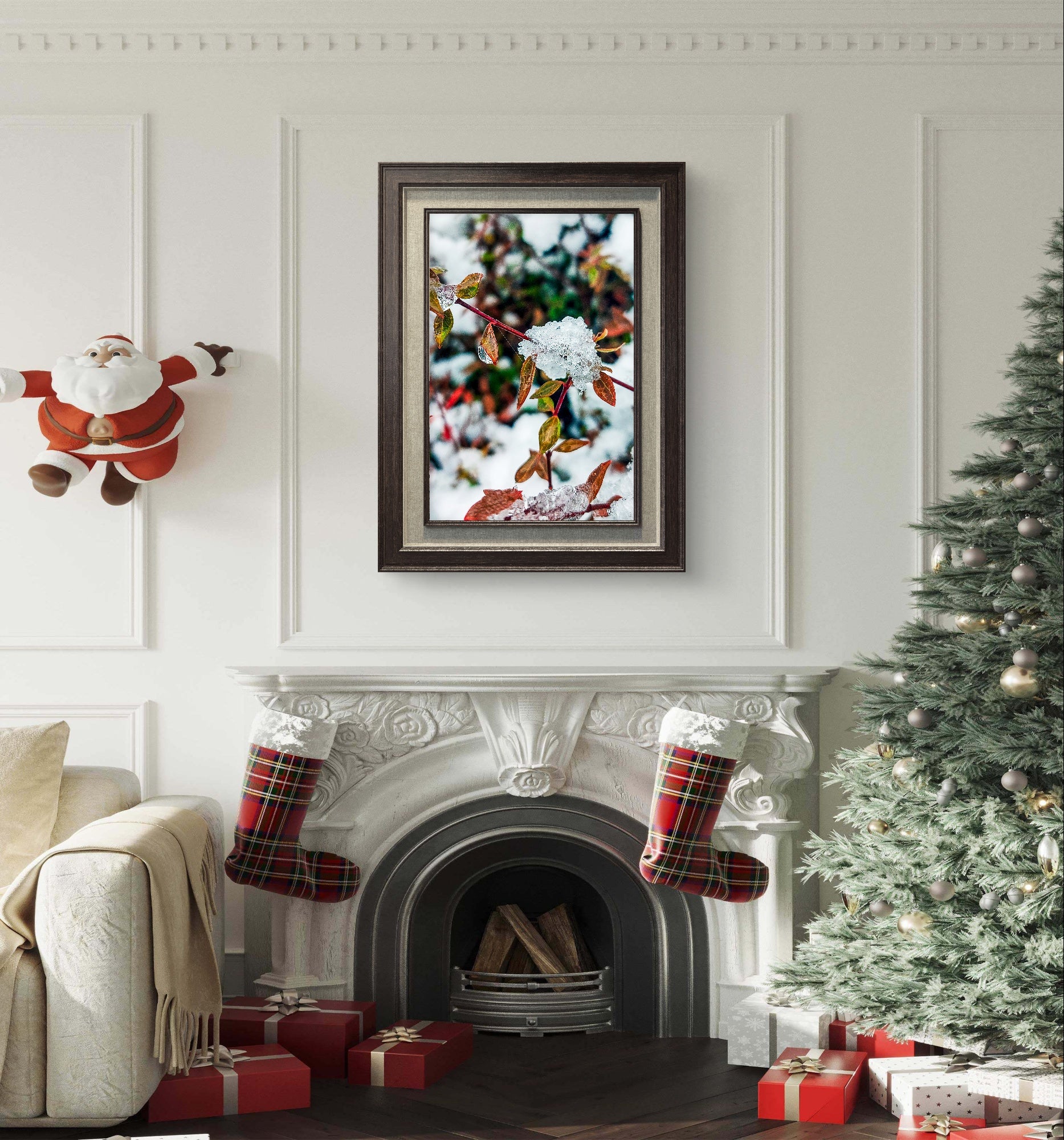 Q: What makes frost-covered leaf photography unique for home decor?