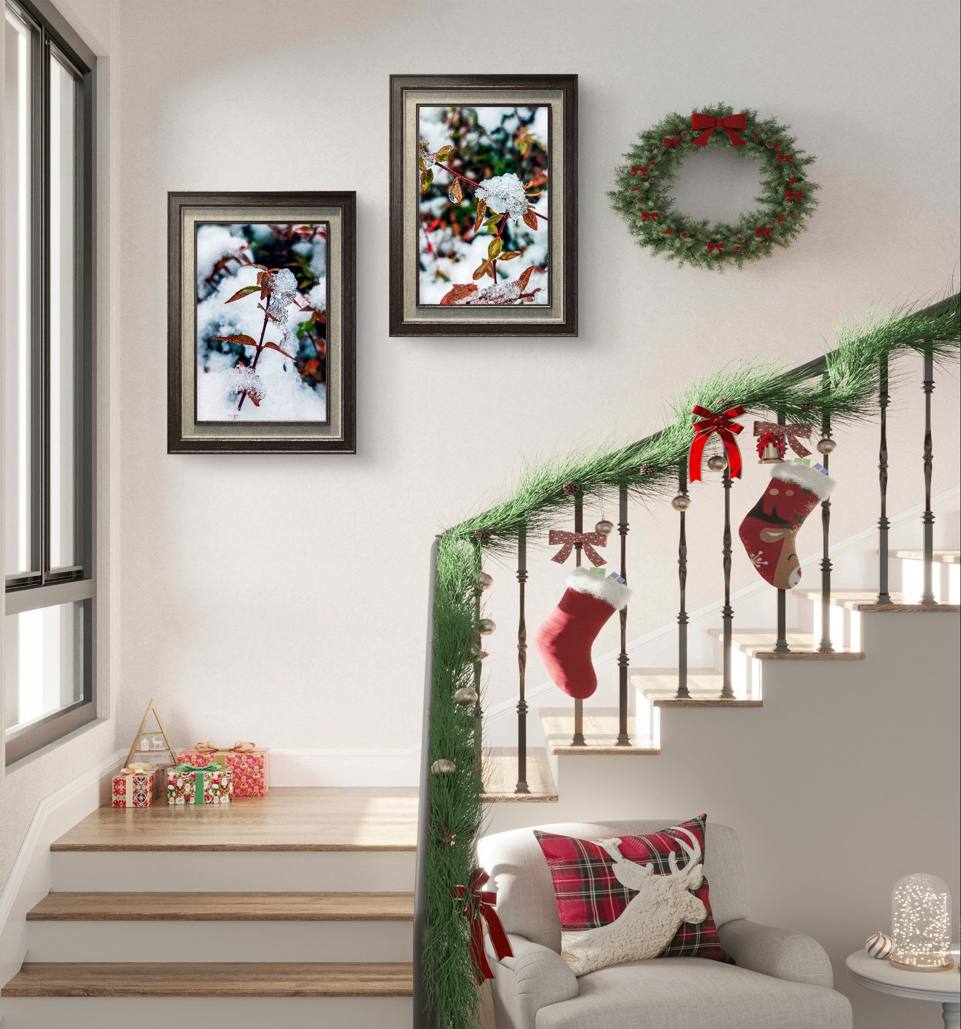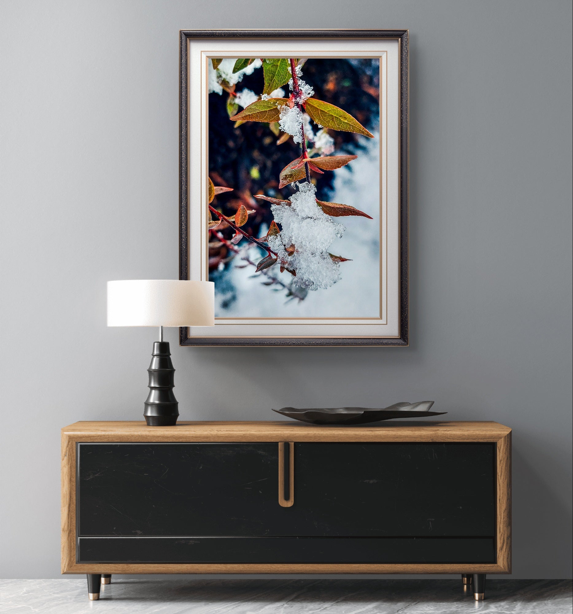 A: Strategic considerations exist for both seasonal rotation and extended display depending on your preferences and context. Strong Winter Seasonal Appeal: Frost makes these obviously winter-themed, most impactful November-February when frost naturally occurs. Perfect for seasonal decorators who enjoy changing with nature's cycles. Extended Display Arguments: The leaf element extends relevance beyond strict winter into autumn transition (October-January works naturally). Red-brown earth tones provide warmth during cold months when most needed psychologically. Nature photography transcends strict seasonality for biophilic design enthusiasts. Year-Round Scenarios: Cold climate regions where frost season is longer (September-April). Homes of nature photography enthusiasts who appreciate the subject regardless of season. Personal spaces (bedrooms, offices) where individual preference outweighs seasonal propriety. Room Context: More likely to stay displayed year-round in private spaces than public entertaining areas. Hybrid Approach: Display in main areas seasonally, keep permanent in personal spaces. Decision Factors: If you love the colors and composition, the "right" season is whenever you want to enjoy them. Seasonal rotation keeps decor fresh; permanent display celebrates consistent appreciation of natural beauty.