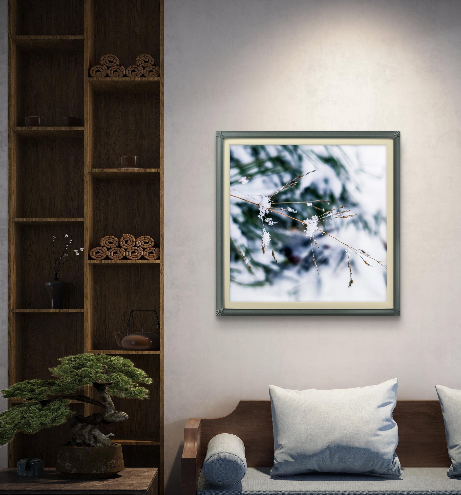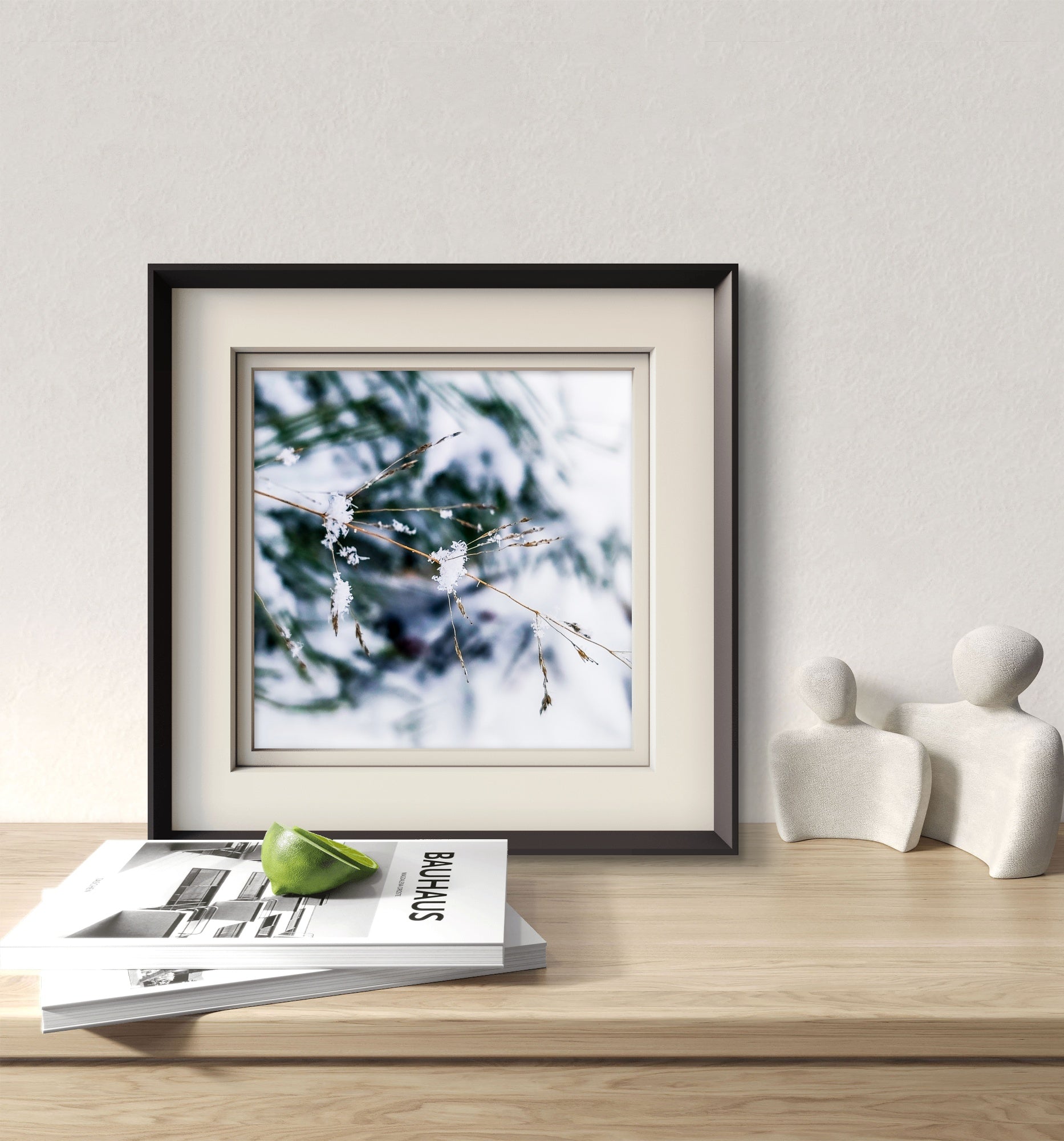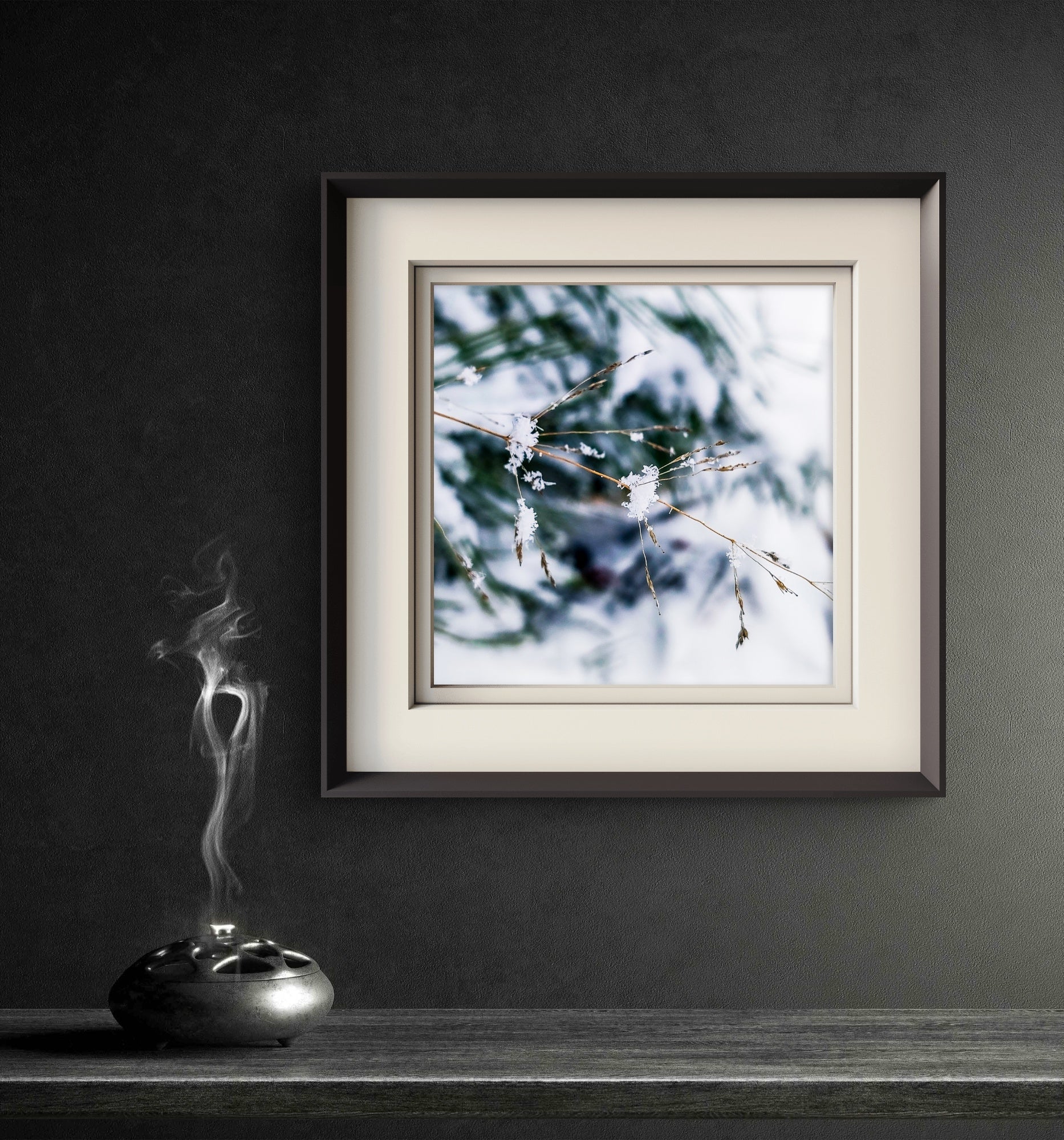 Q: Is this too minimalist/simple for a statement piece? A: Minimalism is the statement. In spaces overwhelmed with visual noise, this provides essential breathing room. The macro detail (visible snow crystal texture, grass fibers, bokeh spheres) rewards close observation while maintaining overall simplicity. Perfect for: meditation spaces, Scandinavian aesthetics, modern minimalism, Japanese wabi-sabi design, or anywhere needing visual rest.