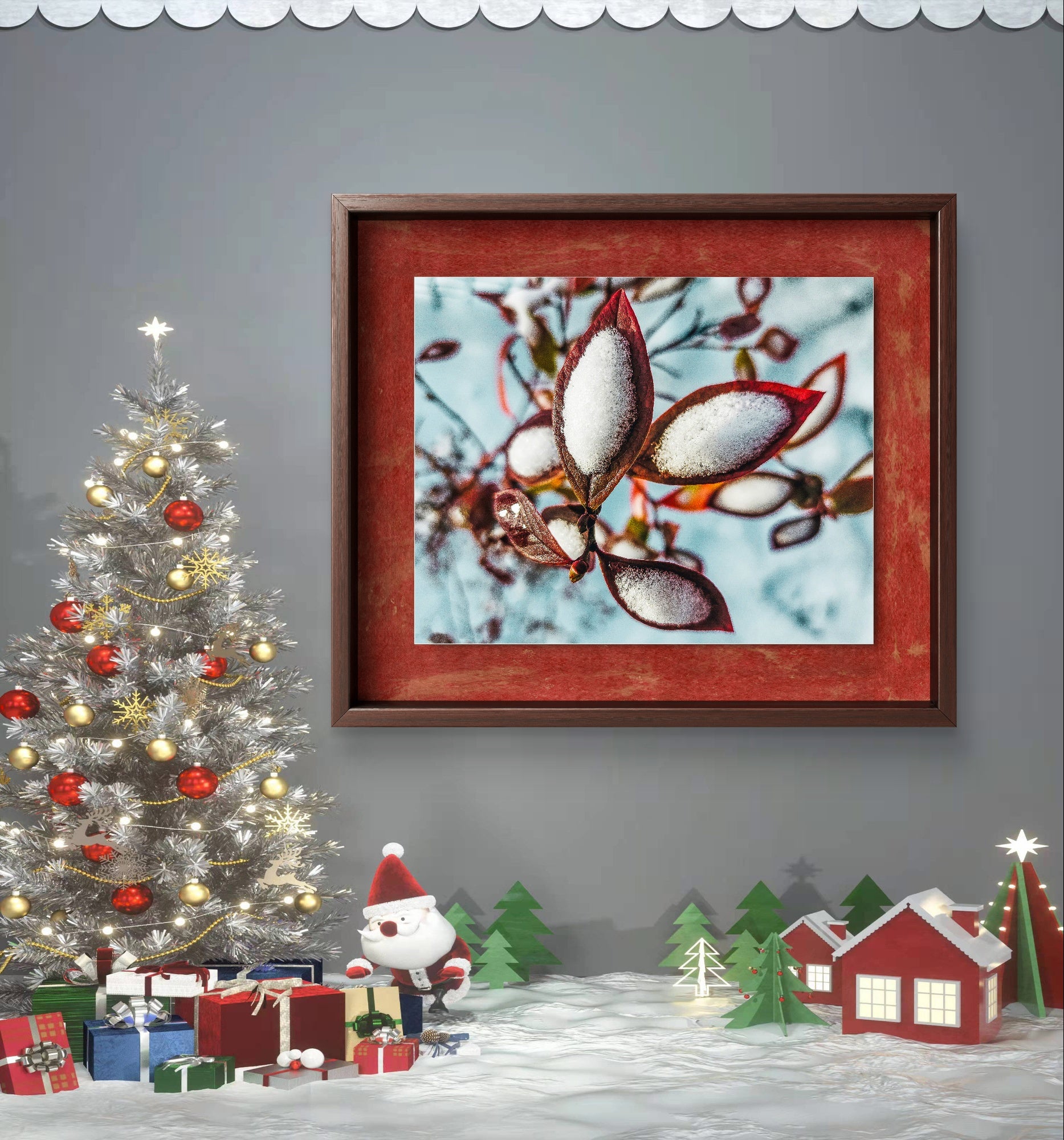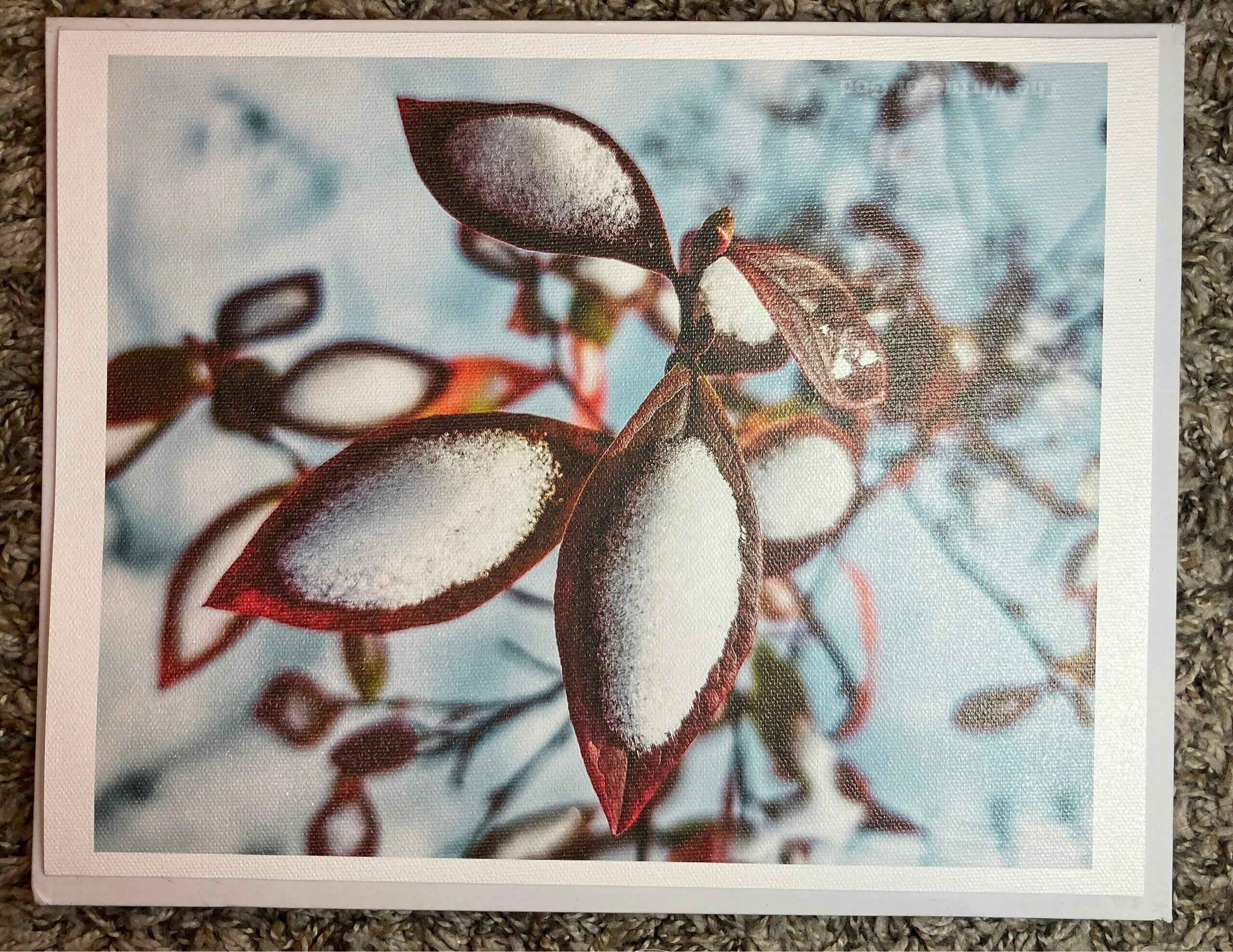 A: This is 100% authentic nature photography captured by The Virtue of God, a woman-owned photography business in Washington State. I personally photographed these snow-covered red leaves at sunset during winter 2024. Every detail—the ice crystals, leaf veins, and color gradients—is real. I never use AI-generated imagery or stock photos. Each print comes from my original photograph taken in the Pacific Northwest wilderness.