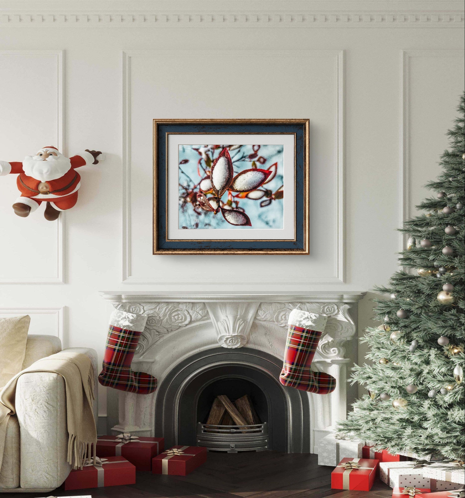 A: Biophilic design incorporates natural elements (plants, natural light, nature imagery) into indoor spaces to improve human wellbeing. Scientific studies show that biophilic design reduces stress, improves focus, enhances creativity, and promotes emotional wellness. Nature photography like this winter leaves print brings the calming, restorative benefits of the outdoors into your home or office—especially valuable in urban environments or during seasons when you can't spend time outside.
