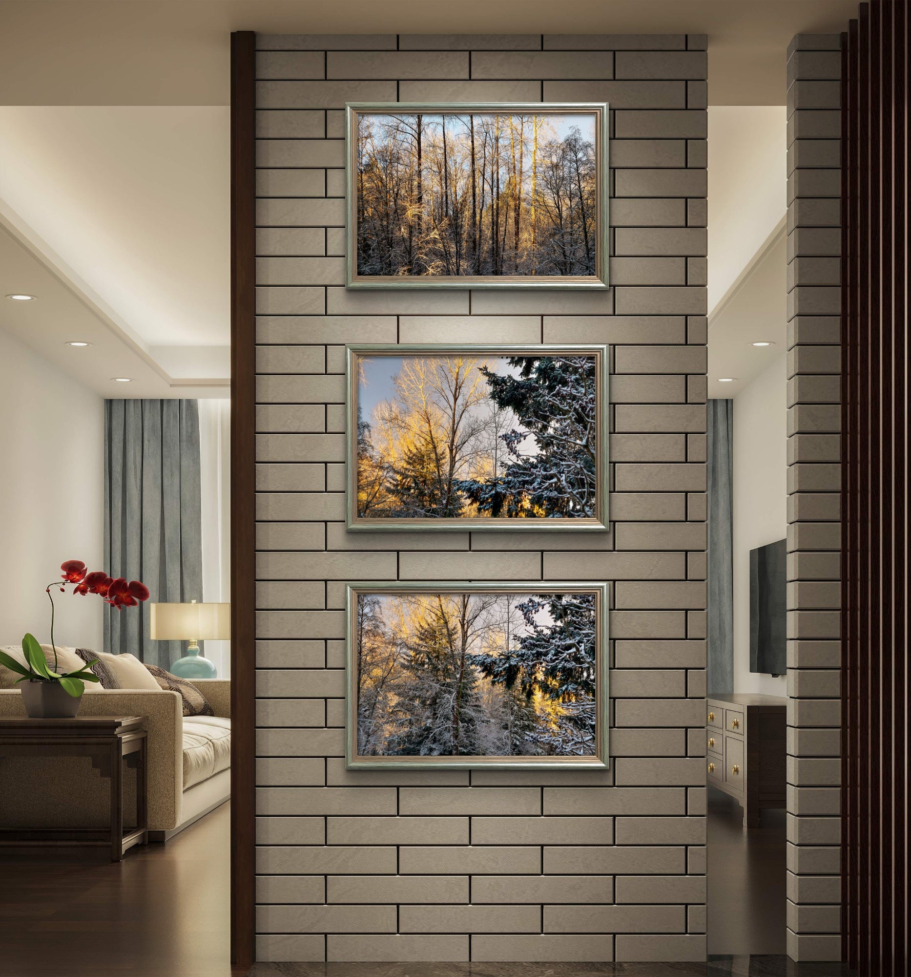 Versatile color palette – Gold, brown, white snow, and blue sky complement most interiors