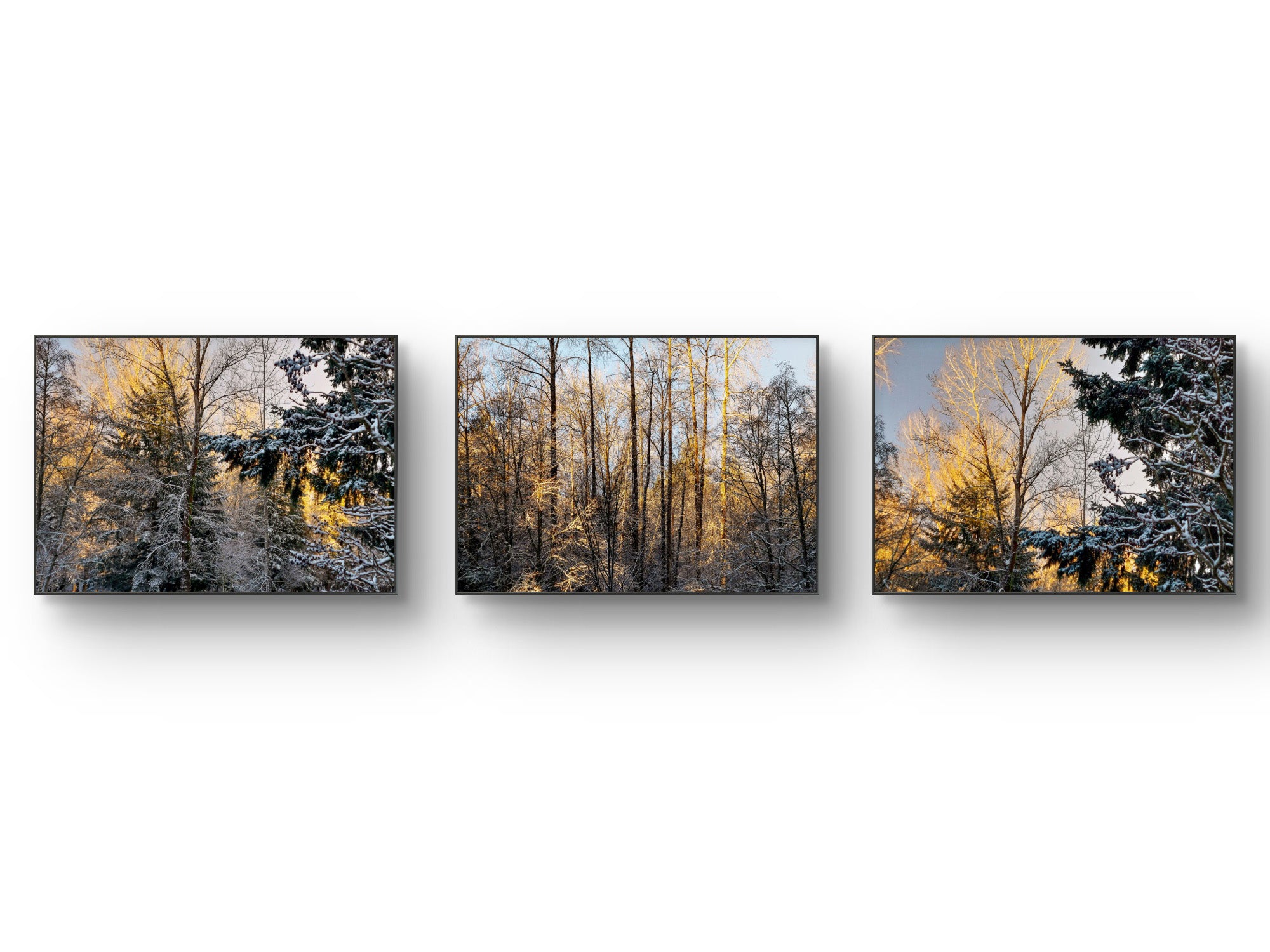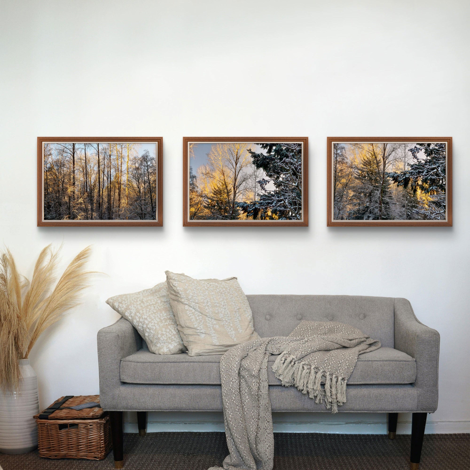 Winter Sunrise Forest Canvas Set of 3 | Peaceful Biophilic Wall Art